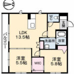 | 間取内容 | LDK13.5帖、洋5.5帖、洋5.8帖 | ||