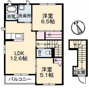 | 間取内容 | 洋6.5帖、洋5.1帖、LDK12.6帖 | ||